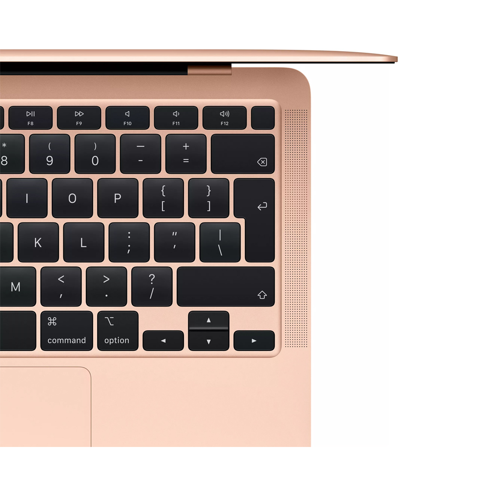 Their thin, light notebook, completely transformed by the Apple M1 chip. CPU speeds up to 3.5x faster. GPU speeds up to 5x faster. Their most advanced Neural Engine for up to 9x faster machine learning. The longest battery life ever in a MacBook Air. And a silent, fanless design. This much power has never been this ready to go.