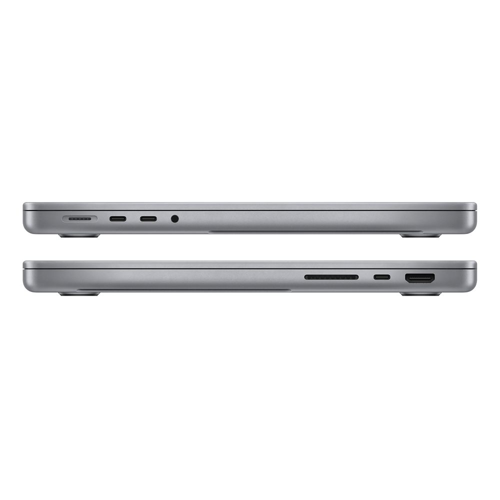 Transfer photos and videos with an SDXC card reader. Connect to TVs or displays with an HDMI output. Listen using a 3.5mm headphone jack that detects and automatically adjusts for high-impedance headphones. Connect to high-speed peripherals or displays with three Thunderbolt 4 ports. And fast-charge using the quick‑releasing MagSafe 3 port.